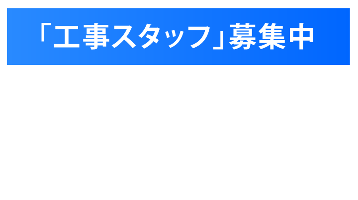 現在、弊社では業務拡大に伴い現場作業員として働いてくれる工事スタッフの求人を行っています。